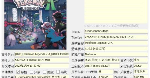 [魔改XCI整合]宝可梦传说Z-A 港中+1.0.2补丁+1DLC