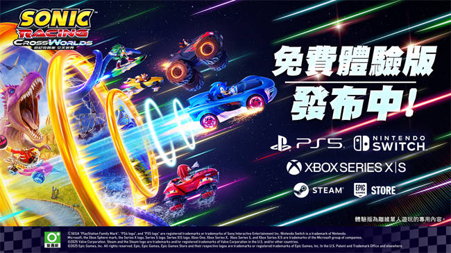 限期举办合作赛事「P5R JOKER 祭典」 为纪念与「P5R JOKER」合作,即日起将举办特别赛事。赛事将分为3 组队伍进行线上竞速,以合计点数竞争排名。挑战「尽可能地获得金环吧!」等特殊规则,于赛事收集祭典点数,便可获得特别游戏道具。获得贴纸和喇叭,自订独一无二的赛车吧。 举办期间:2025 年10 月24 日(五)8:00(UTC + 8)~10 月27 日(一)7:59(UTC + 8) 报酬 ※ 日后的营运更新将发放可在祭典获得的装置 ※ 日后的营运中也有可能透过其他方式获得祭典报酬 ※ 若删除保存资料,至今为止于祭典获得的报酬也将随之删除。将无法再次获得祭典报酬,敬请留意。 全球累积销售部数突破100 万套 我们也宣布《索尼克赛车交叉世界》的全球累计销量突破100 万套。 (※1)此外,本作于Steam 评论获得「压倒性好评」,更于评论汇整网站「Metacritic」的玩家评分获得9.0 以上的高分,屡次创下佳绩,赢得广大玩家的支持。 (截至10 月21 日,PS5 版与Steam 版的评分)体验版亦于各平台发布中,请不要错过试玩机会。 可继承至制品版的体验版发布中 体验版可抢先体验「大奖赛」模式和「计时赛」模式,还可体验自订赛车和装置。此外,保存资料可继承至所购买的制品版,请考虑购买的玩家务必试玩。 体验版可在对应平台(PlayStation 5、Nintendo Switch、Xbox Series X|S、Steam、Epic Games)不限资格免费下载。 |