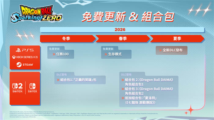 万代南梦宫娱乐宣布,贩售中的经典动漫画《七龙珠》改编动作游戏《七龙珠电光炸裂! ZERO》(PS5/Nintendo Switch/Nintendo Switch 2/Xbox Series X|S/Steam),将于2026 年夏季在PS5/Xbox Series X|S/Steam 平台※推出包含丰富内容的大型DLC。除了全新的可操作角色、装扮、擂台外,还会追加单人游玩也可尽情享受的全新模式。主题曲将采用知名动画歌手影山浩宣作词作曲的全新歌曲《ZERO》。 ※ Nintendo Switch 2/Nintendo Switch 版大型DLC 将于日后另行公开发售时程 大型DLC 宣传影片现已公开 预定夏季推出的大型DLC 中除了加入「巴达克超级赛亚人」、「超级17 号(GT)」、「比克大魔王」等全新可操作角色、装扮及招式等个人化要素及擂台以外,更包含了单人游玩也可尽情享受的全新模式。 玩家可由已于今日公开的宣传影片中观赏最新的游戏画面。 大型DLC 的主题曲为影山浩宣的全新歌曲《ZERO》 影山浩宣的全新乐曲《ZERO》即将成为本作大型DLC 的主题曲! 睽违18 年再次负责《七龙珠Z Sparking!》系列相关内容的主题曲,并同时为本乐曲作词与作曲。玩家将可以尽情期待在《七龙珠电光炸裂! ZERO》中,享受与刺激战斗完美契合的热血歌曲。 影山浩宣 图像 1977 年时以在日本摇滚音乐史上大放光彩的乐团「LAZY」主唱「Michelle」的身分出道,留下了《Akazukinchan Goyoujin》、《DREAMER》等名曲。 1985 年转移至日本哥伦比亚后首次接触到动画、特摄歌曲,并以富士电视台的动画作品《七龙珠Z》主题曲《CHA-LA HEAD-CHA-LA》及朝日电视台的动画作品《圣斗士星矢》主题曲《 Saint Seiya - Soldier Dream》,于日本动画歌曲界确立了代表性的地位。 目前以擅长作曲、编曲、制作乐曲的「动画歌曲艺术家」身分参与过众多企划,也以动画歌曲演唱团体「JAM Project」的团长于全球展开活动。 全新模式「任务100」预计于1 月26 日的免费更新正式发布 包含全新模式「任务100」的免费更新已于今日正式发布。 「任务100」是曾在系列前作《七龙珠Z Sparking! METEOR》中收录,可以享受100 个指定了对战对手及玩家队伍编组条件的战斗的单人模式。 此外,「生存模式」亦预计在2026 年春季透过免费更新加入游戏,敬请期待全新内容。 |