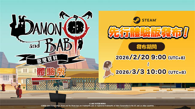 PC / PS4 / PS5 / Nintendo Switch 新作《恶魔宝贝》即将于3 月26 日发售,亚克系统亚洲(ARC SYSTEM WORKS ASIA)今(26)日宣布,其《恶魔宝贝》Steam 先行体验版即日起率先开放。另外,官方释出了「制作花絮影片」,带领玩家探讨开发人员幕后故事,同时也揭开第三弹游戏角色介绍。 《恶魔宝贝》是款融合了「探索型动作」与需要精准操作的「双摇杆射击」要素的俯视角射击动作游戏,故事述魔王「戴蒙」为了遵守与已故挚友之间的约定,带着一名人类孩子踏上解除诅咒的旅程。玩家将在强化戴蒙的据点模式与探索模式之间来回推进,运用手枪、机关枪等多样武器,挑战讲求策略的Boss 战。此外,本作支援离线双人合作游玩,可操作伙伴犬协助收集道具或支援战斗。 Steam 先行体验版今日释出 配合Steam 新品节,官方今日起抢先释出《恶魔宝贝》Steam 限时抢先体验版,并将持续开放至3 月3 日10:00 止,玩家将可以在此期间免费体验游戏。 ※ PlayStation 5、PlayStation 4、Nintendo Switch 体验版将于日后另行释出。