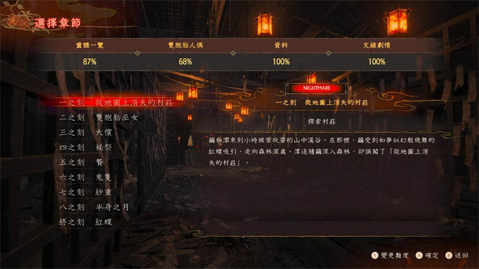前言 零系列,终于光荣又想起来了。 其实我一直以为没可能再有新作了,毕竟月蚀移植的销量说真的不是特别亮眼,纪录上就12万套,即便是炒冷饭,但也可能说明这系列销量水准就这样而已,不太可能加大投资。于是当大家都在猜下一款会不会是将Wii上的真红之蝶移植来的时候,光荣宣布了,的确是红蝶,但却是款重制版,于是我们得到了一款新的零游戏。 「零~红蝶~ REMAKE」,是由忍者组开发,光荣特库摩于2026年在PS5、Xbox、NS2、PC等各大平台上发售的恐怖游戏。作为系列最高峰的红蝶,当年在剧情及营造上受到媒体的肯定,更于2013年也配合Wii进行了一次重制,也因此这次可以说是第二次重制了。 为了这次重制,我也是先把原版跟真红给玩过一次了,玩过之后才发现这款的确比真红之蝶更有重制感,也写这篇心得跟大家分享。 注:以下将会严重剧透,若尚未玩过游戏或是尚未破关者观看前请三思。 剧情 故事发生在本该消失的村子——皆神村。村子内有着以双胞胎举行仪式红贽祭来压制黄泉入口的传统,然而在十多年前,被选为祭品的八重以及纱重逃出了村子,最后只抓回纱重,仪式也因为失去双子而失败,村子更在一夕之间消失。而数十年后天仓双子来到这片即将要被水坝淹没的地区,姊姊茧却被红蝶所吸引住,追上来后,却因而闯进这个地图上消失的村庄,正式揭开了游戏的序幕。 日式恐怖的风格依旧吸引人,从双胞胎延伸出来的本该合而为一设定,搭配上仪式献祭,以及偏远村庄,显得既是怪谈却又有莫名地难以无视。 而为了更好的描写故事的残酷,设定了三组被祭典所影响的双胞胎,一是没能正常举行而引发大偿的八重纱重,二是举行了但失败的睦月树月,三是举行且成功的茜及蓟。 八重跟纱重就不用说了,渴望外面的世界的八重带着纱重逃跑,却意外让纱重被留下,又受到树月自杀的打击,孤独下带着怨恨最终引发大偿爆发。游戏中纱重多次都是以掐死澪来完成仪式,或许这也是对导致灾难的遗憾吧。 而成功举行的茜及蓟也没好到哪去,杀死后蓟后同样留下了孤独,承受不住变得自闭,使得父亲埋怨仪式并设计了人偶作替代,却导致怨灵附身的悲剧。 举行失败的树月更是既没成功还失去,苦痛到一夜白发。不论成功与否都会让人感到孤独的仪式,这或许才是剧情中最让人感觉痛苦的地方吧。唯一可惜的是树月这对还是没什么描写,从原版就是如此到了重制版也一样。 同样也因为双胞胎设定的衍伸,人物间那趋近于病态的情感让我印象深刻,虽说大家都会说手足之情,但当真正发展到要两人要合而为一永远在一起,那就又是另外一回事了,更可怕的是没有人会去质疑,好像去质疑的玩家才是奇怪的那个。 而对于双子来说,最害怕的则是被遗留,对八重纱重来说更是如此,不断说着被丢下的怨恨,或许正是因为这样茧跟澪才会这么贴合吧,五之刻同样也是姐姐要被留下,心态崩溃的情况下被纱重主导的更严重。同时茧的病态也给剧情提味许多,例如说约定结局,面对失明的澪,茧最后露出的不是感慨,而是令人不安的笑容。 虽说如此,但我还是觉得很可惜,因为原版非常着墨于八重与纱重的故事上,反而对于澪跟茧就相对没那么丰富,尤其是姐姐的性格记忆还被纱重影响,使得玩家根本不知道现在在谈心的到底是茧还是纱重。但重制版却没针对这点做加强,使得玩家很难在过程中对这对姐妹的情感有特别的想法,甚至我第一次玩其实误以为那都是纱重的想法,看到约定结局才愣了下。 不过这次新增的结局倒比较讲明这股较不明的情感,茧更能述说自己害怕被丢下而出了意外,化解了澪一直自责的心结。澪也讲述着想跟姐姐一起在一起的愿望,两人终于在心理上能合为一体。 除了姐妹之外,结局中也有着其他人的场面,虽说一路上被这些鬼所害,但最终看到他们得以超渡,说真的我内心还是挺欣慰的。 至于主要故事,其实对比原版也是几乎一致,不论是一开始被红蝶吸引的茧,随后踏入村庄,进逢坂家,姐姐跑掉,要找钥匙,到黑泽家,纱重出现,每个主要事件都没有改变,少数有新增的,则是针对原版一些设定的补足。 例如说原本其实没有详说为什么后来射影机可以打倒绳男以及纱重,而这次则补充说是将机能封印解除的缘故。又或是桐生家的风车徽章并没有说到为什么藏在纸门房内,则提到被人偶拿走以及缘由。 一些谜题的关联性也更强了,在黑泽家要进到双胞胎房间时,所需要的三重菱钥匙是放在佣人的房间,原版并没有解释这点,只是因为能去的房间就那么多也不会漏掉。重制版则用文件补述来龙去脉,就没有那么大的违和感了。 此外一个重点则是支线任务,其他角色的故事都被统一归类进支线任务.像是误入村子的水坝调查员真澄以及追赶而来的美耶子,还有些则是补述新的剧情,例如说逃离村庄的八重,就有补充离开前跟树月的对话并在最后无法再回到村庄而懊悔,我认为这段补充就很棒。 不过支线任务的缺点就是会造成跟主线的撕裂感,毕竟故事主轴一直都是要找姐姐然后逃出村庄,甚至有几个支线是终之刻才会出现的,这时候姐姐被抓走了,但我没有要先去找他喔,我要先去解支线。 况且有些支线也是比较随便,例如说双胞胎蓟跟茜,我会觉得应该再多著墨于这对双胞胎的故事,却只是帮忙收掉人偶以及打死小鬼而已。 游戏性 由于上一款重制的真红之蝶是尽可能保留原版系统及